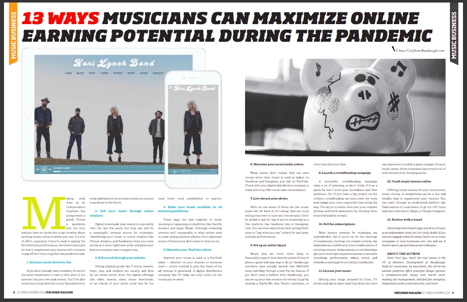 Since the COVID-19 pandemic began, musicians have earned over $5 million in commission-free sales of digital music, merch, livestream tickets, fan subscriptions, digital multimedia, and tip donations through their websites powered by Bandzoogle.